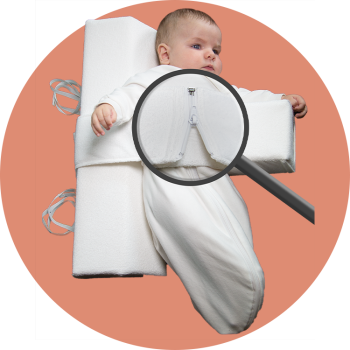 Durch den praktischen Reißverschluss im Rumpfgurt kannst du dein Baby jederzeit ganz einfach und unkompliziert rausnehmen – und natürlich auch wieder hinlegen. Ein erneutes Anpassen des Lagerungskissens ist nicht notwendig.