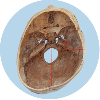 Die verschobene Position der Gleichgewichtsorgane ist durch die roten Kreuze gekennzeichnet.